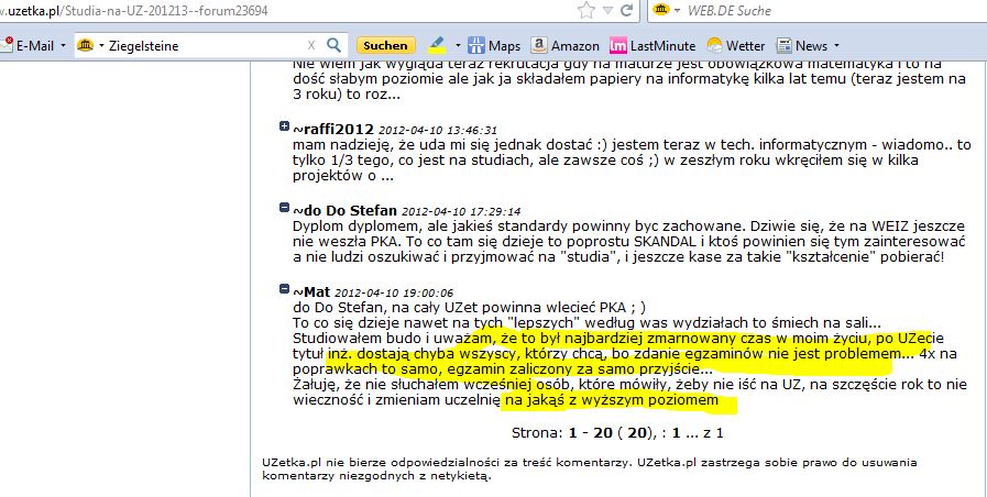 Żałuję, że nie słuchałem wcześniej osób, które mówiły, żeby nie iść na UZ, na szczęście rok to nie wieczność i zmieniam uczelnię na jakąś z wyższym poziomem
